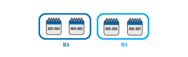 Vous devez également suivre un minimum de 10 heures d’activités de formation structurées pertinentes en médiation au cours d’une période de référence. Les périodes de référence pour les médiateurs sont des périodes fixes de 2 ans* :