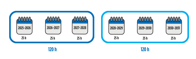 Sur un cycle de 3 ans, vous devez toujours cumuler 120 heures de formation. L'Ordre évalue de manière rétrospective si vous avez effectué les 120 heures exigées pour la période de 3 ans écoulée. Notez que vous devez continuer d’effectuer le minimum d’heures de formation exigé chaque année.