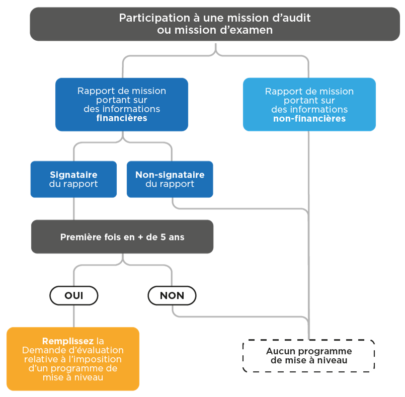 Vous devez préalablement soumettre à l'Ordre une Demande d’évaluation relative à l’imposition d’un programme de mise à niveau, comme prévu aux articles 25 à 29 du Règlement sur le permis de comptabilité publique de l’Ordre des comptables professionnels agréés du Québec.