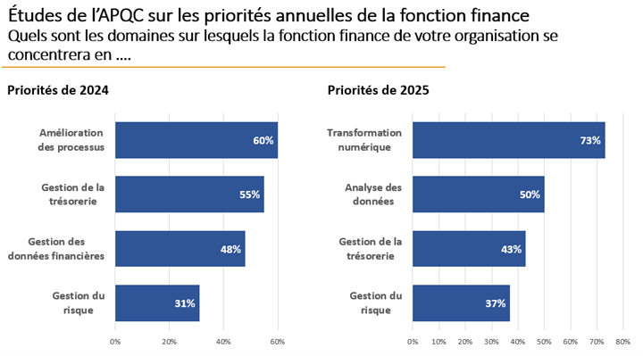 Source : APQC 2024 et 2025 Financial Management Priorities and Challenges Report_Cross Industry